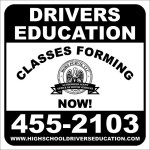 If you have seen this sign outside your school, it means that classes are forming now for drivers education. Don't be left out, sign up for the next class today.