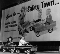 Under the guidance of volunteer youth instructors and credentialed teachers, children practice and experience their lessons in Safety Town, a miniature city layout built to the scale of a small child. Safety Town is designed to ensure safety education needs are reflected in the structures and amenities of the town. Amenities include an actual railroad crossing, a residential and business area, streets with sidewalks and curbs, traffic signs, a parking lot for bicycles, a park and miniature buildings.